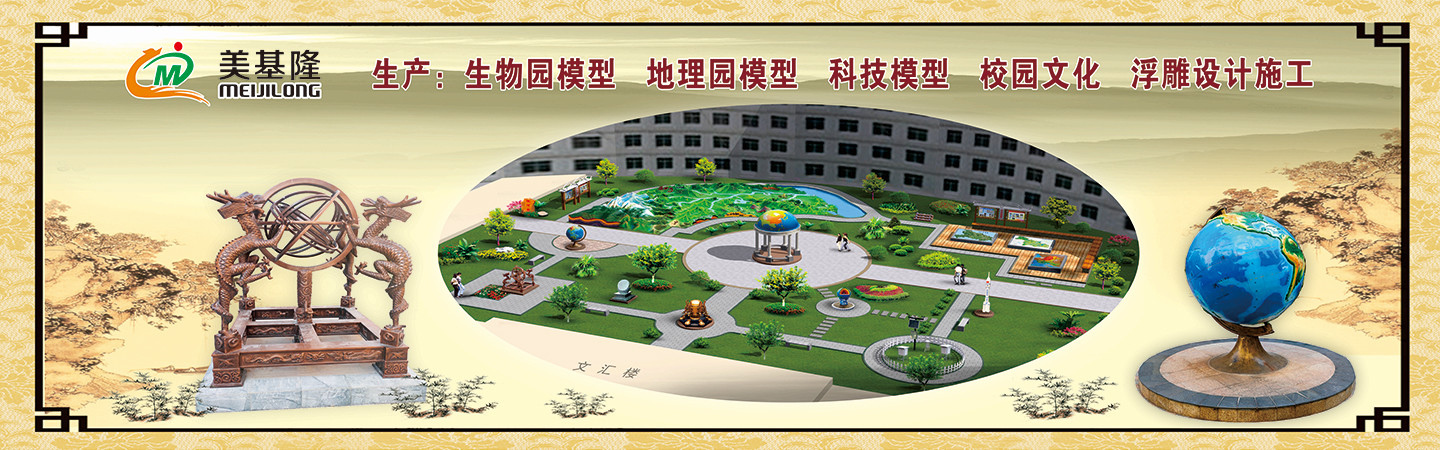 廣東順德美基隆園林藝術有限公司是集產(chǎn)品開發(fā) , 設計制作校園雕塑文化、地理園、生物園、生態(tài)園、科技園,浮雕、人物雕像仿真動物,綠化校園中小學實驗室配套為一體的大型教學設備企業(yè)廠家。廣東順德美基隆園林藝術有限公司自成立以來,堅持以質(zhì)量立品牌、藝術求真知、專業(yè)為教育、服務守承諾的服務宗旨,致力于教育行業(yè),并為教育事業(yè)提供高品質(zhì)的設計、制作、銷售、安裝等優(yōu)質(zhì)的服務。